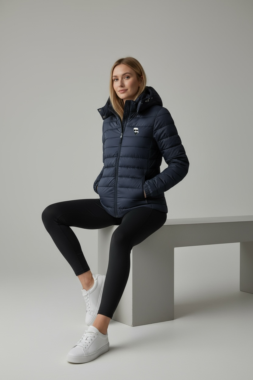 Γυναικείο Μπουφάν Karl Lagerfeld Puffer με Κουκούλα – Μπλε Σκούρο