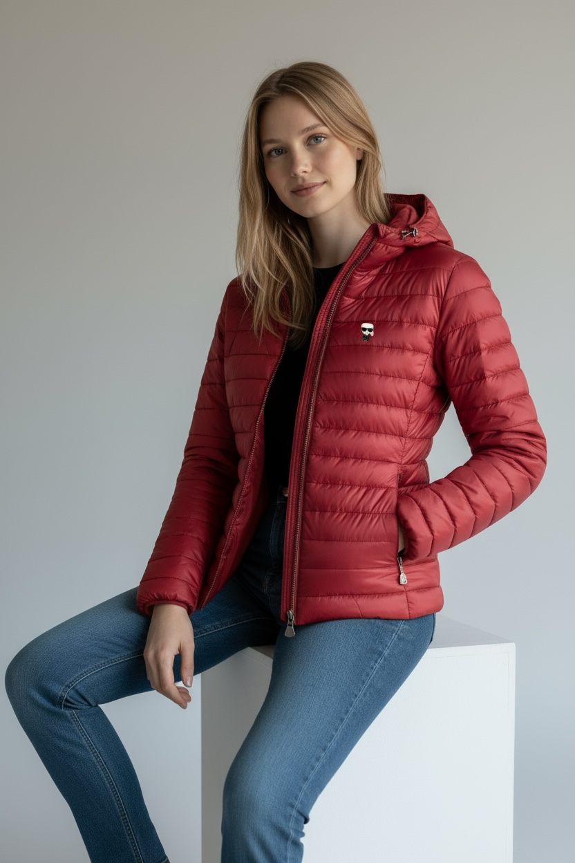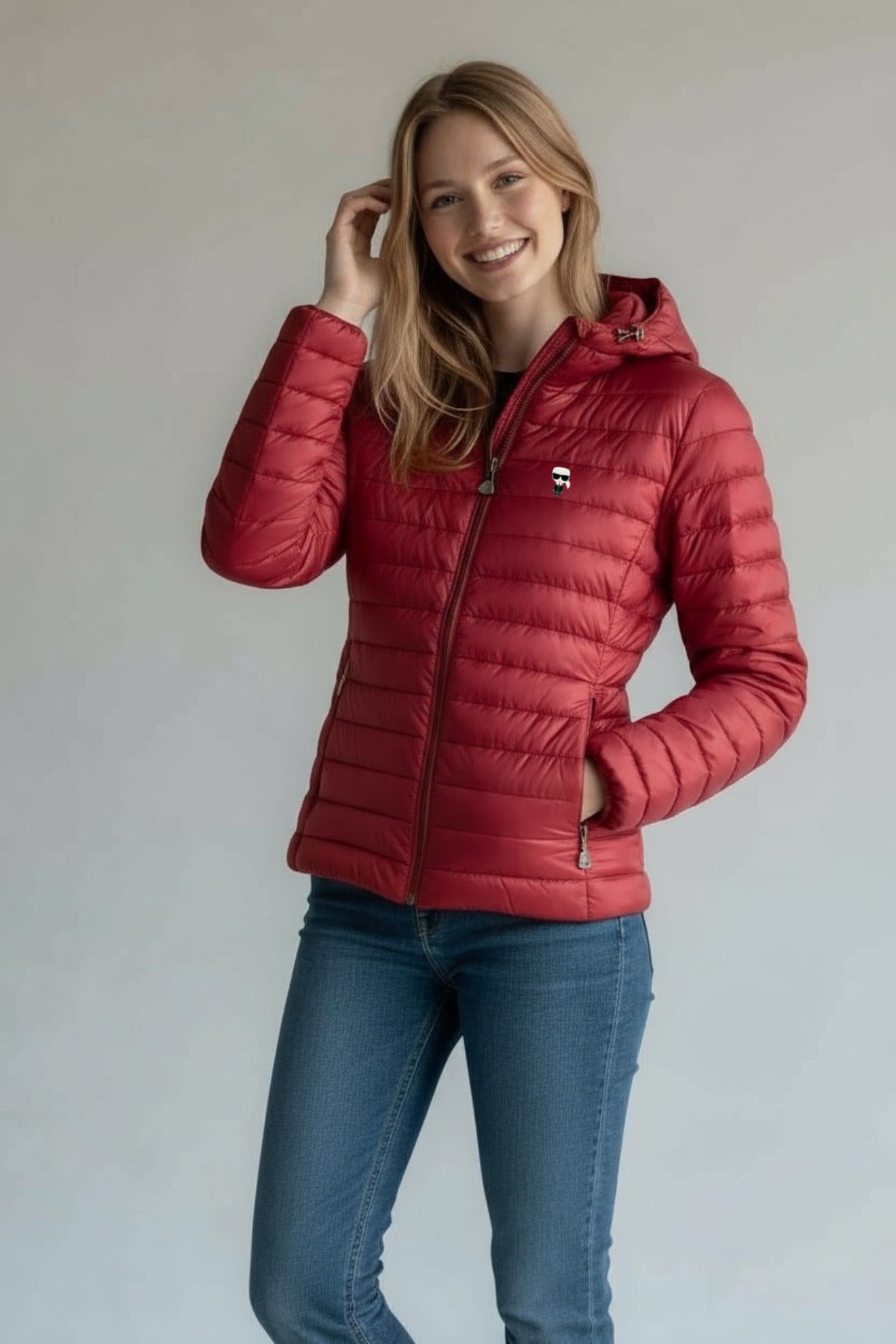 Γυναικείο Μπουφάν Karl Lagerfeld Puffer με Κουκούλα – Μπορντό