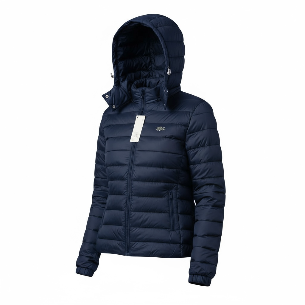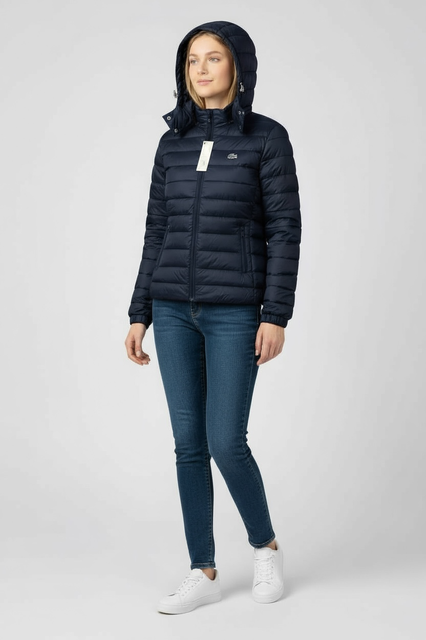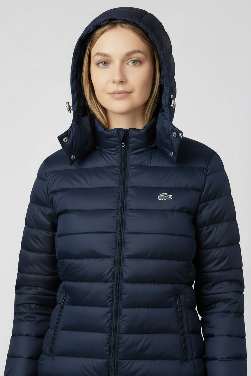 Γυναικείο Φουσκωτό Μπουφάν με Κουκούλα Lacoste – Μπλε