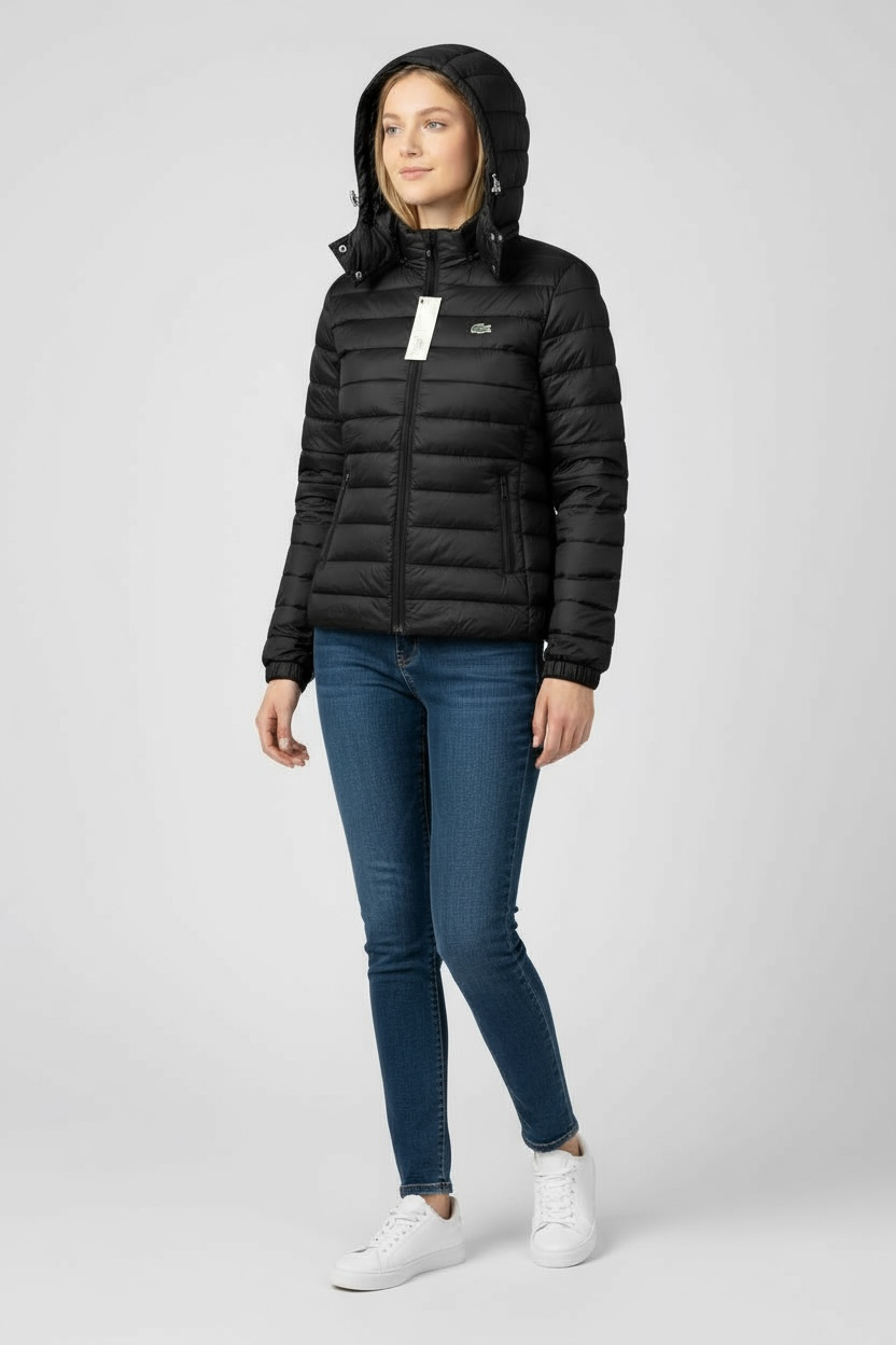 Γυναικείο Φουσκωτό Μπουφάν με Κουκούλα Lacoste – Μαύρο
